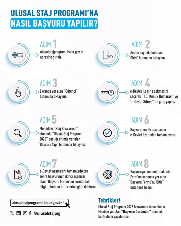 2026 yılı için ilan edilen Ulusal Staj Programı başlamıştır.